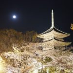 2日の夜に、東寺のライトアップを訪れました。ソメイヨシノは綺麗でしたが、不二桜が弱ってしまっています。