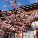 京都では超早咲きの桜たちが見頃を迎えています。一条戻橋の河津桜も青空の下に美しい花を咲かせていました。