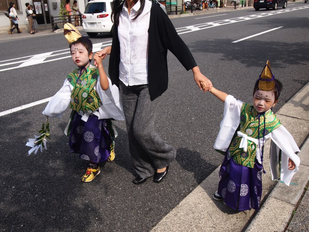 今年の粟田祭では、石見神楽や夜渡り神事などを見てきました。その様子は先日までのブログをご覧ください。祭りの本番は8日に行われた神幸祭です。粟田祭は千年の歴史を持ち、特に剣鉾が知られ、室町時代に祇園祭が催行できなかった年は粟田祭をもって祇園祭の代わりとしたとされるほどです。なぜならば、粟田神社の御祭神は祇園祭を行う八坂神社の神々と同じで、神社の由緒は下記のように伝わっています。