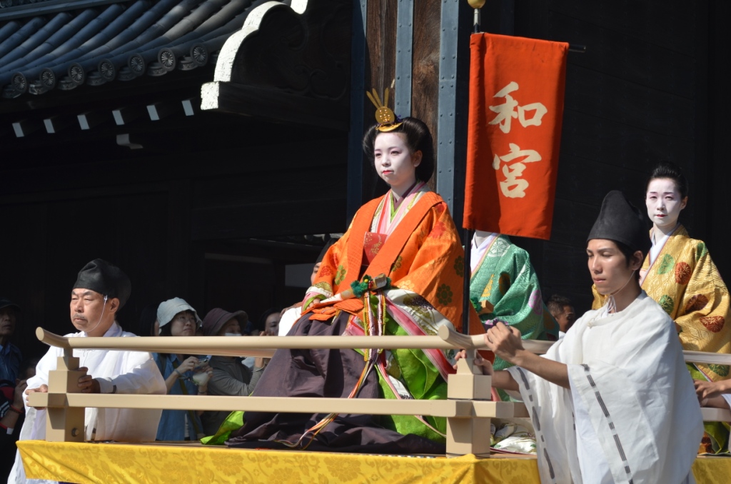 続いて、江戸時代婦人列。和宮を始め、江戸時代に京都で活躍をした女性が登場します。かつては花街の奉仕でしたが、現在は京都市地域女性連合会によって奉仕されています。やはり婦人列は人気があり、華やかな印象を受けますね。