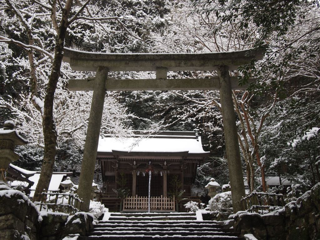 途中、八瀬にも立ち寄りってみました。八瀬は市街地よりしっかりと雪が残っていて、雪の山里の雰囲気があります。その鎮守の社・八瀬天満宮も雪に包まれ、神秘的な雰囲気でした。過去に何度も書いてきましたが、やはり雪の神社はまさに神の存在をうかがわせそうなほど、静けさと厳かさがあります。前回訪れたのは赦免地踊りの時でした。その賑わいが想像できないほど、ひっそりとした境内。冬の八瀬の厳しさも垣間見たようでした。