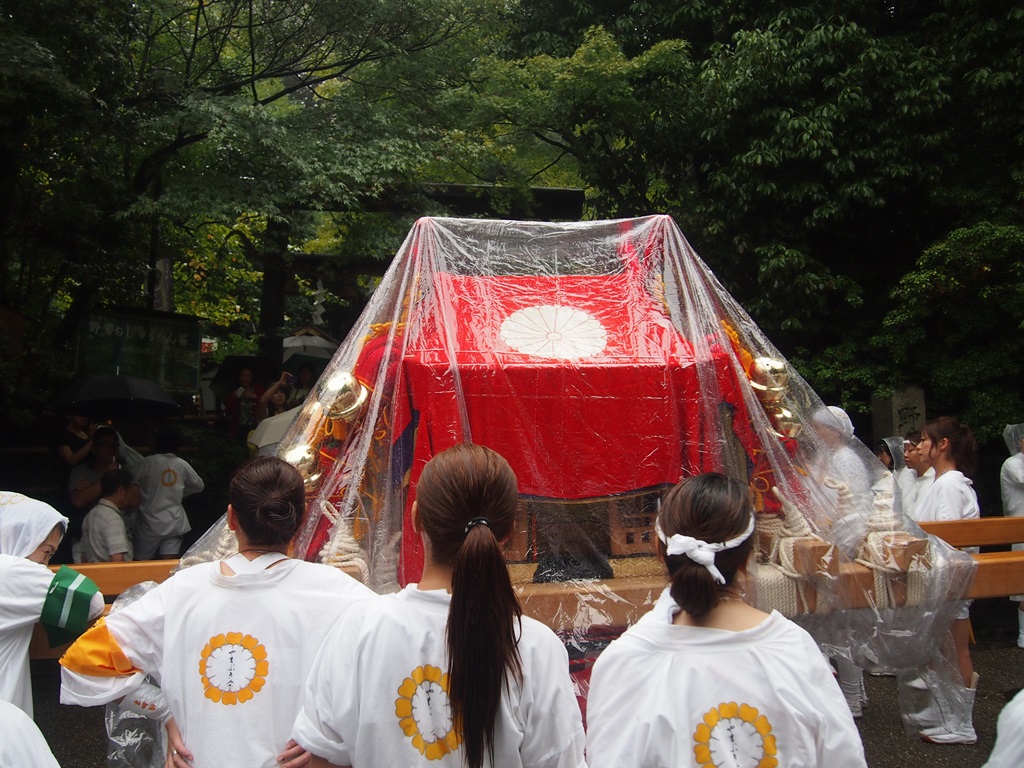 9月1日に、松尾大社の八朔祭が行われ、嵐山の大堰川では女神輿の船渡御が雨の中行われました。