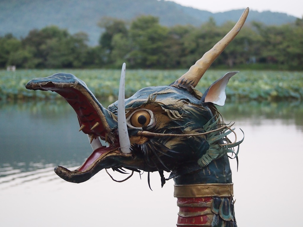 大覚寺の観月の夕べは、毎年中秋の名月の前後に行われており、今年は9月19日の中秋の名月を含む、19日~21日の3日間行われました。その目玉は大沢池に浮かぶ龍頭(りゅうとう)・鷁首(げきしゅ)の舟で、見事な名月を静かに楽しむことができます。ただ、舟券を手に入れるのが難しく、今年は15時からの販売開始でしたが、19日の中秋の名月の日は、15時40分にはすべて完売したと耳にしました。20日は、14時半頃に列に並んで、どの時間帯も買うことができました。