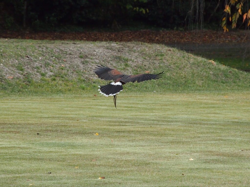 二条城 放鷹術このあと、疑似餌を獲る場面や最後には鷹匠との記念撮影もあったようですが、私は時間の都合で最後まで見ることはできませんでした。放鷹術の最初のアナウンスでは、後半ほど面白くなるそうです。開始時刻から1時間ほどお時間を見ておくとよいでしょう。二条城での放鷹術は、来年1月11日(土)の午前11時からと午後2時からも披露されますので、よければご覧になってみてください。