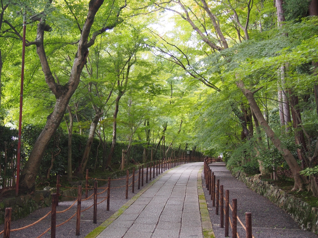 今回は日頃講座を開催している関係で特別講師として呼んでいただきました。光明寺は紅葉が美しいお寺として名高い、西山浄土宗の総本山です。法然上人が荼毘に付された聖地で、御影堂には法然上人が大切にしていた手紙から作られたという「張子の御影」が安置されています。紅葉シーズンは多くの観光客で賑わいますが、この時期は拝観料も必要なく、境内を自由に散策して参拝することができます。もみじ参道は緑も大変美しく、気持ちよく歩くことができました。