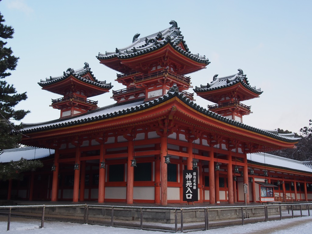 2月14日の京都の雪。平安神宮の雪景色を眺めに行ってきました。