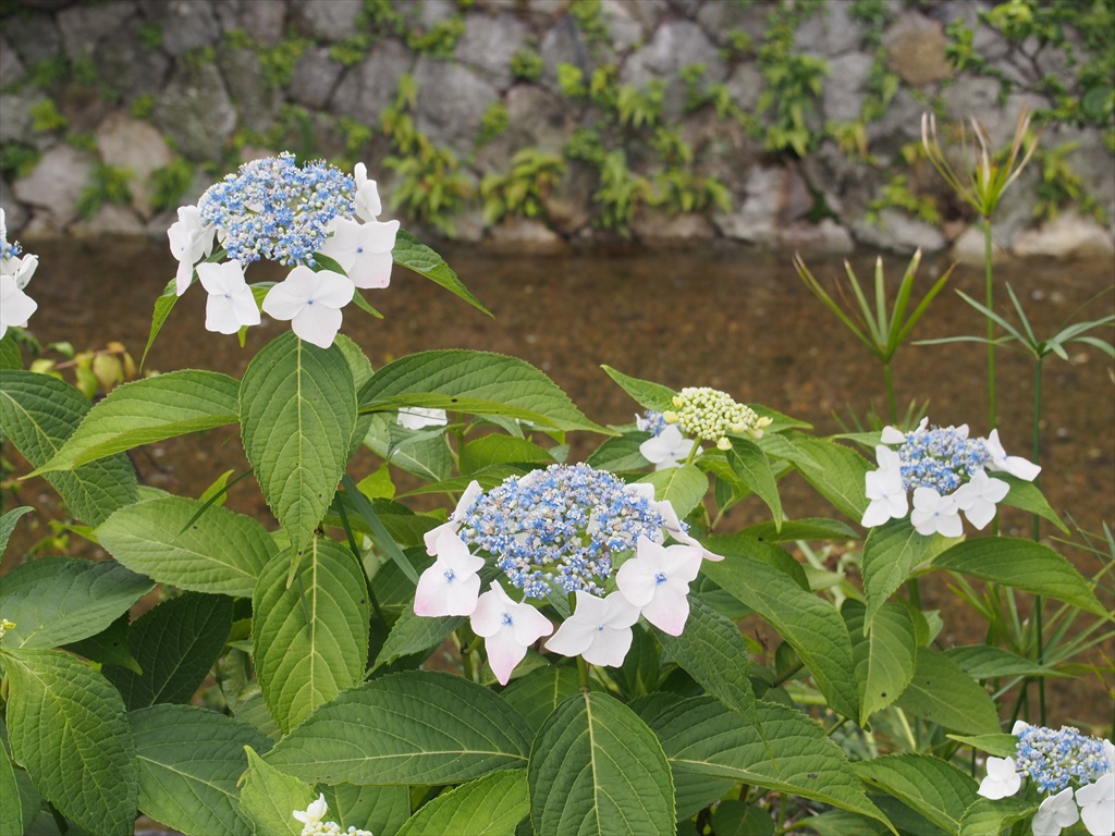 祇園白川 アジサイ祇園の北にある祇園白川は、白川の流れに沿ってアジサイが咲き、梅雨の時期は雨に濡れた石畳も美しい場所です。先日訪れるとハート形のアジサイを見かけました。ただ、このハート形のアジサイは角度によってはハート形に見えないという微妙なもの。運よく見つけることができて嬉しい気持ちになりました。