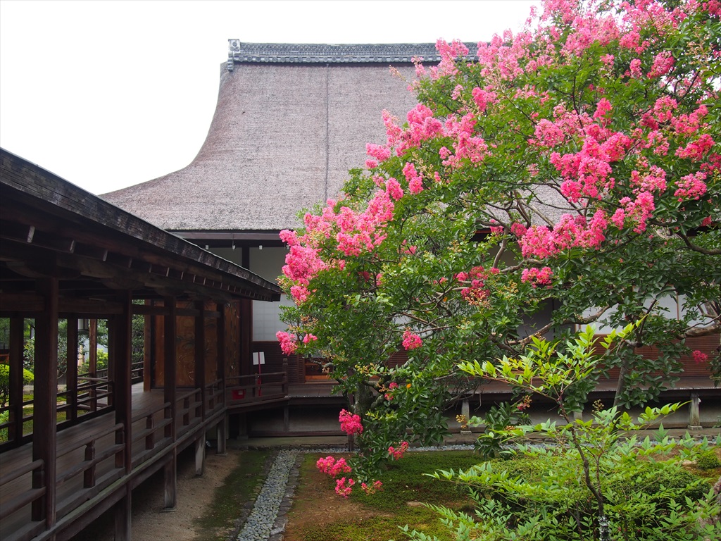 京都では街路樹によく使われていて、京都市役所前や鴨川沿い、北山通などで見られ、豊国神社前から七条通にかけての大和大路通に咲くサルスベリは非常に綺麗です。泉涌寺や銀閣寺の観音殿の横に咲く白いサルスベリも見事で、清水寺の拝観出口付近の池にある木は三重塔とも絵になります。街路樹のみならず、市内各地の寺院や民家にも多くのサルスベリを見ることが出来ます。