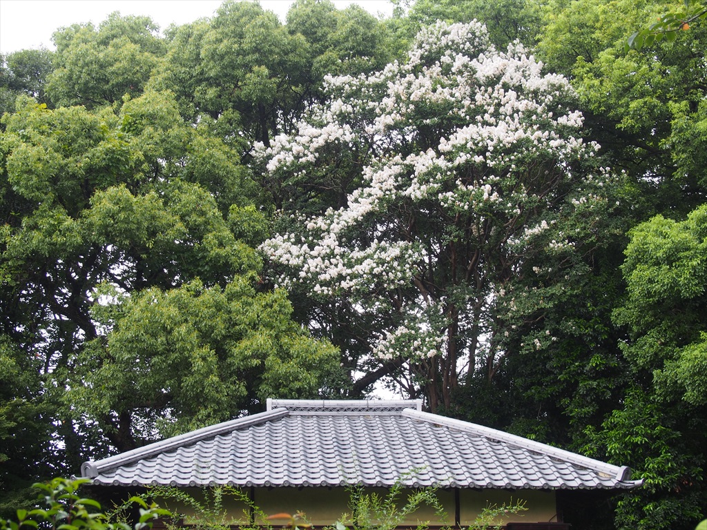 夏の秋が同居する時期とあって、園内は夏を思わせるサルスベリと、秋を感じさせる萩やムラサキシキブがそれぞれ見られました。とはいえ、サルスベリは池に散り、少しづつ季節が交代していく様子が見て取れます。睡蓮もピークは過ぎていますが、まだ白い花を咲かせていました。渉成園は、京都駅の近くにありますが比較的静かでよく手入れされていて、広い園内をのんびりと歩けますので、よければ足を延ばしてみて下さい。