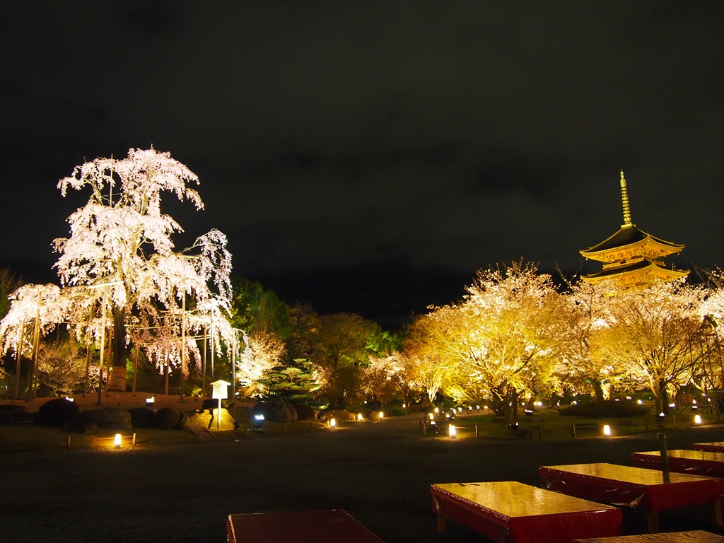 東寺では今年もライトアップが行われています。不二桜やソメイヨシノは既に満開ですのでお早めに行かれるとよいでしょう。東寺は京都駅からもほど近く、会社帰りにも立ち寄りやすい場所。ライトアップの美しさは「この世のものとは思えない」と形容する方もおられるほど。今年は花が例年よりも少ないようにも感じますが、その美しさは健在だと思います。是非ご覧になってみてください。