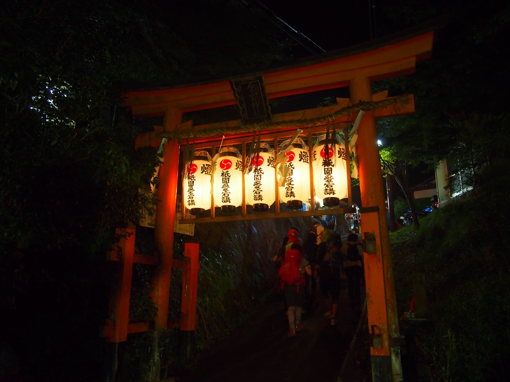 千日詣り愛宕神社は京都の北西にそびえる山。その標高924mの山頂に愛宕神社は鎮座しています。京都のお店ではよく「阿多古祀符火廼要慎(あたごしふひのようじん)」 と書かれた愛宕神社のお札を見かけ、火除けの御利益で知られる神社です。千日詣りの日に限らず、3歳になるまでに愛宕神社に参拝をすると一生火難に合わないとされ、この日も幼子を連れたりおぶった親子連れを何組もお見かけしました。山頂への道はふもとの清滝からおよそ2時間、往復5時間ほどは要する初心者にはなかなか険しい山。千日詣り(千日通夜祭)が行われるのは夜で、山の天気も変わりやすく、それなりの装備が必要。決して甘く見て登らない方がよいでしょう。清滝から山上までは水分を補給できる場所がほぼないため、必ずスポーツドリンク類を持参してください。