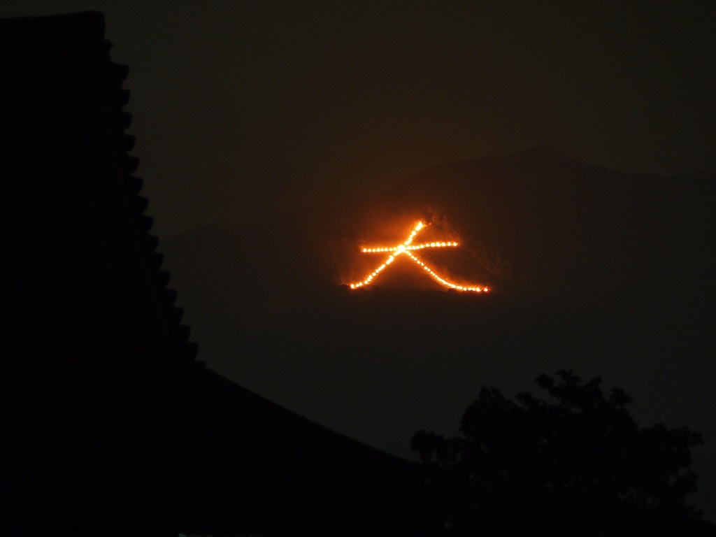2016年の五山の送り火。今年は大雨の中での点火となりました。私は船形を眺めてきました。