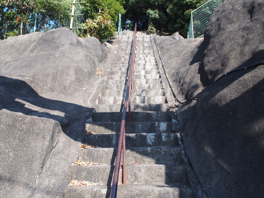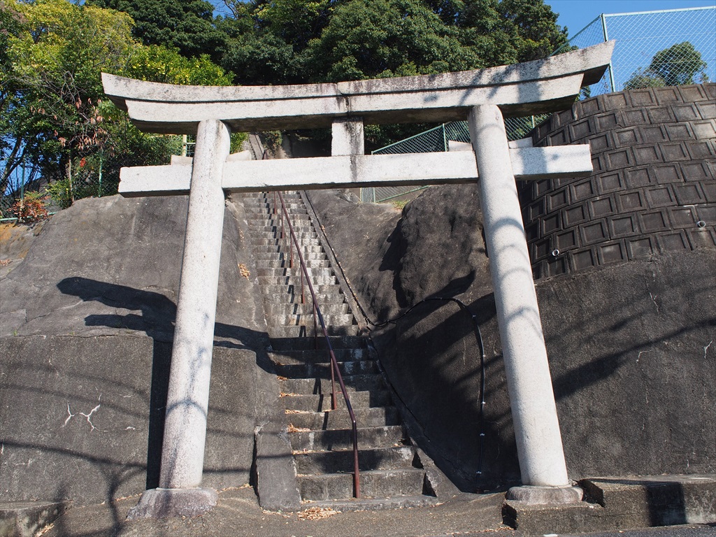 狩尾神社(とがのおじんじゃ)は、男山の西にある独立した小さな丘の上に建つ神社で、石清水八幡宮の境外摂社です(明治10年に摂社となったそう)。地図で見ると橋本駅の500mほど東で、駅からほぼ直線的に行けそうですが、道中のアップダウンはすさまじく、ふもとにたどり着くまでがたいへん。周りをコンクリートで固められた丘の姿にも驚くでしょう。地元ではプリン山とも呼ばれているそうです。そして南側にある石鳥居の先は、大変急な階段です。ここを登るのか…と、くじけそうになるほど。しかし登って行くと橋本の住宅街や、対岸の山並みが一望できます。
