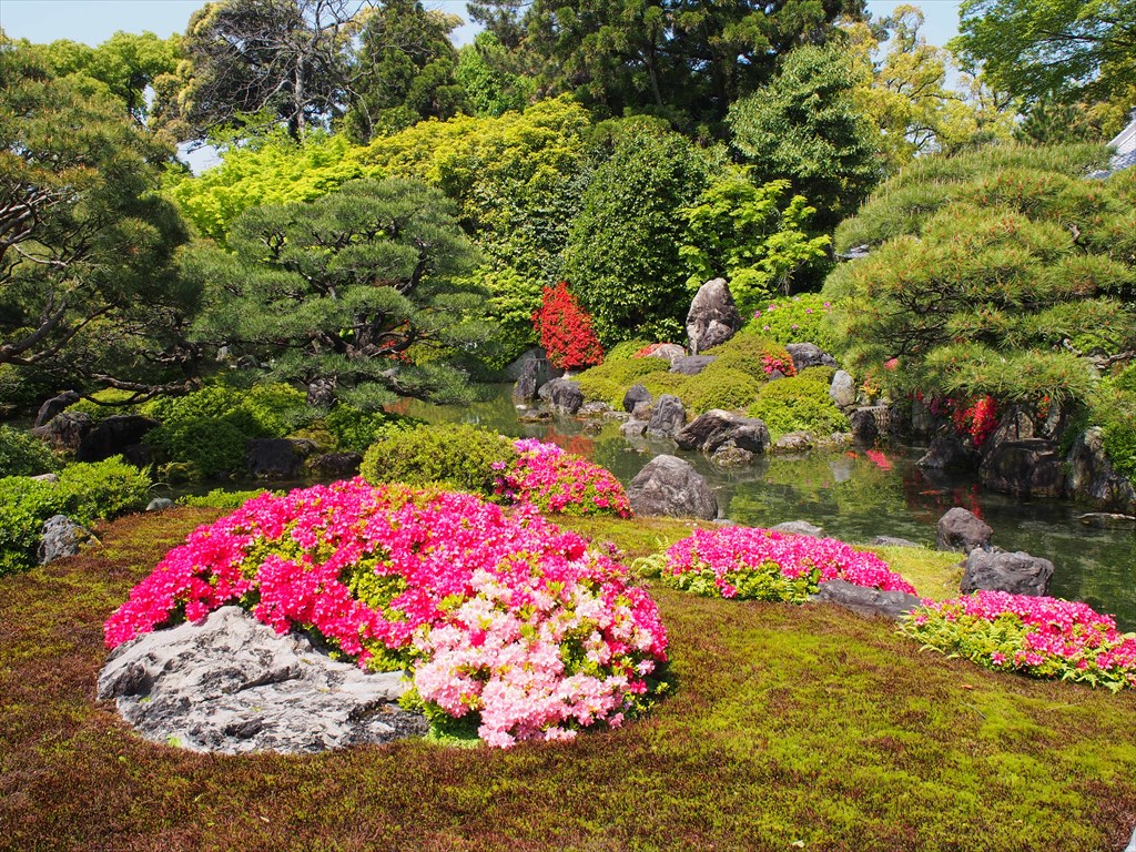 京都は藤やつつじが見ごろを迎え、約120mの藤棚で有名な鳥羽水環境保全センターは1日まで公開されていました。ご案内で訪れた城南宮でも、神苑の室町の庭につつじが咲き、藤棚の藤も見ごろでたいへんに美しい光景を眺めることができました。天気も良く、穏やかな日に訪れることができ、この時期の魅力を感じていただけたのではと思います。春の盛りから初夏へと移る今の時期も、京都は華やかです。