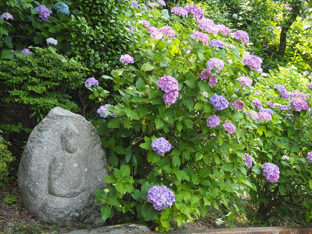 善峯寺のアジサイ交通手段はバスもありますが、自家用車で行く方の方が多いでしょう。山門をくぐって起伏のある境内を進むと、やがて視界が開けてたくさんのアジサイが目に飛び込んできます。実はこの場所、正式名は「桜あじさい苑」で、春には美しい桜が迎えてくれるところです。善峯寺は1万本という圧倒的な数に加え、起伏がある斜面に立体的に、それも開放感を持って植えられているところが他にはない魅力でしょう。初めて目にする方は歓声を上げるほどです。天気がよければアジサイの奥に麓の風景も望めます。まだまだ見頃で、今年も素晴らしい光景を目にすることができました。機会がありましたら、足を延ばしてみてください。
