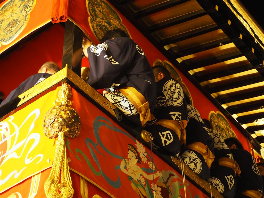 南観音山2014年に復興した大船鉾は500円で搭乗することができます。今年は龍頭が乗る年です。復興してから今年で5年めとあってすっかり存在が定着してきました。まだまだ復興途中でもありますので授与品の売り上げも今後に生かされます。江戸時代から伝わる大金幣は会所で展示されています。また別途、龍神の安曇磯良(あずみのいそら)像と住吉明神像が祀られています。住吉明神は今年初のお目見えです。大船鉾はご神体も復興途中ですので、年々整っていくさまが楽しみです。