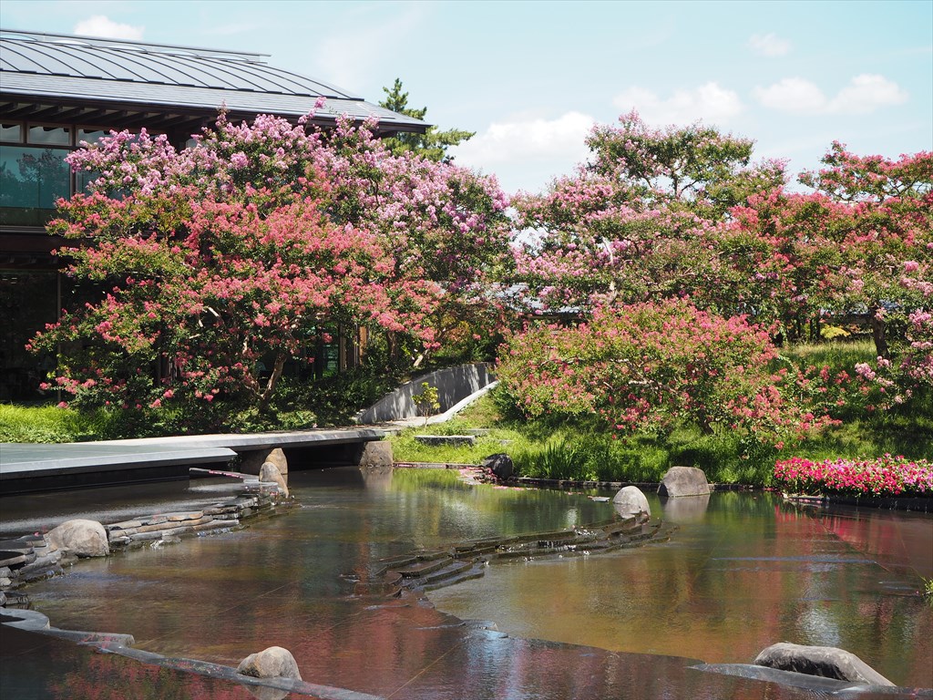 梅小路公園の「朱雀の庭」でサルスベリ(百日紅)の花が見事に咲いています。