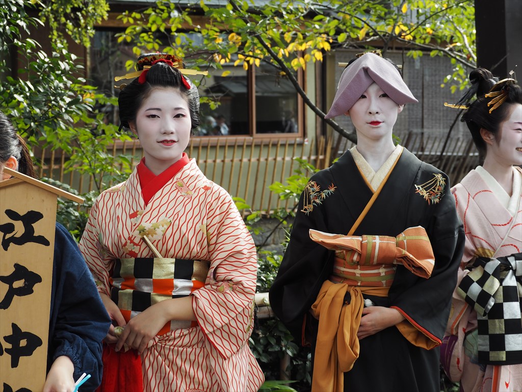 行列の方は比較的混雑が少なく眺めやすいでしょう。お勧めは祇園白川周辺。一行は東大路を経て花見小路から新橋通へ入り、一回りして白川南通を戻ってきます。いずれも町家の風景と時代装束がよく合って絵になる場所です。さらには休憩時間もあって、さながらモデルさんたちの撮影会と化します。この日も多くのカメラマンが集まっていました。この後、行列は花見小路を通って神社へと戻って行きます。伝統の髪形を目にできる櫛まつりは、京都らしいお祭りとしてこの先も人気を集めることでしょう。