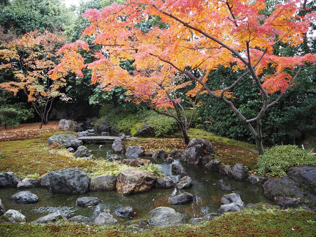 城南宮 12月3日3日に訪れた時は、平安の庭の池の水辺を彩るカエデの美しさが抜群でした。訪れる人が声を上げるほどの美しさです。よいタイミングで訪れることができました。さらに進んだ桃山の庭の奥には茶席も設けられており、紅葉を眺めながらお抹茶をいただけます(別途300円)。この時期の城南宮は空いていておすすめでした。