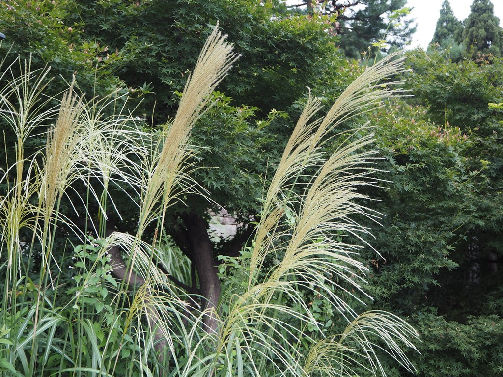 今の時期はサルスベリの花が大変見事に咲き誇っています。京都でも有数の密度でしょう。池に映り込む様子がよいですね。この日は急な雨が降り、ベンチで雨宿りをしながら時を過ごしました。ゆっくりと時間が流れているような気持ちになります。水辺には秋海棠(シュウカイドウ)も咲き始めています。よければ足を延ばしてみてください。