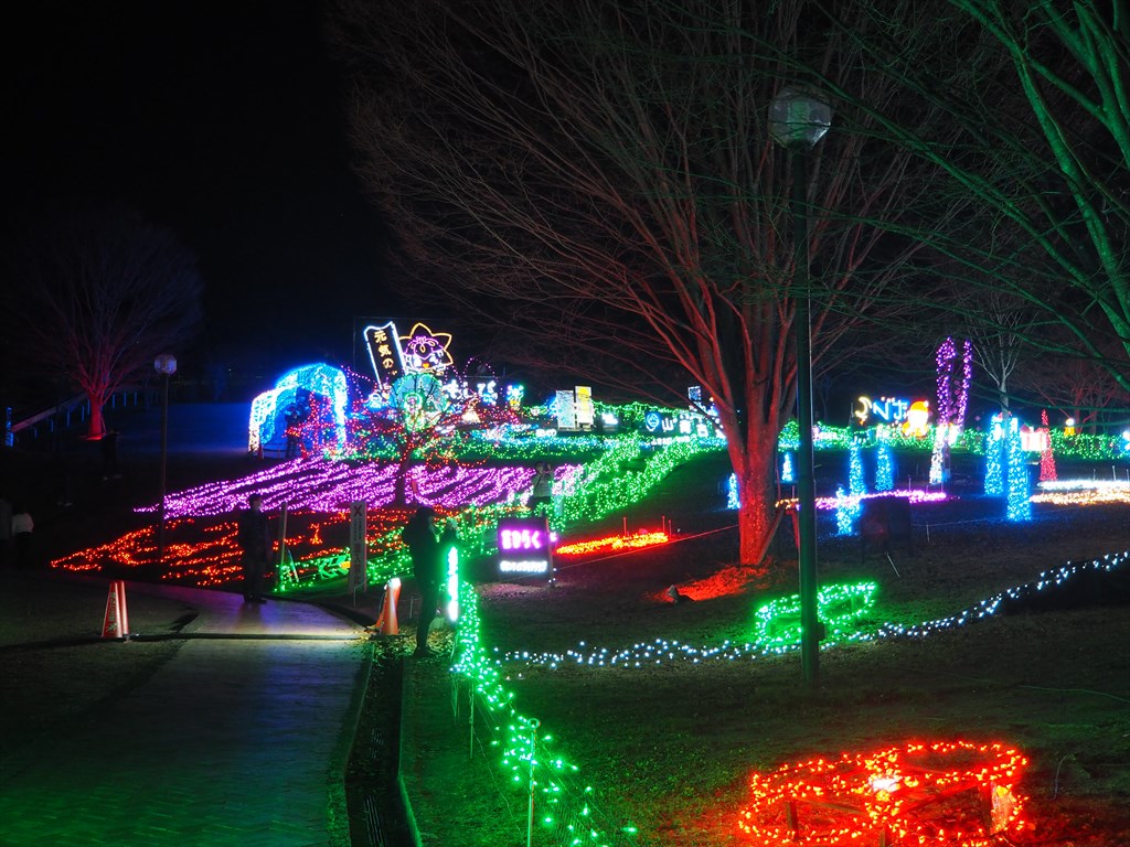 メイン会場の城陽市総合運動公園はかなり広く、イルミネーションの規模も大きいです。内容も木々の装飾からキャラクターもの、地元の山背古道など地元にちなんだものまで大変多彩です。毎年、京都らしいモチーフが登場しますが、今年は伏見稲荷大社の千本鳥居が通れるイルミネーションとなっていたり、アマビエなど疫病退散系のイルミネーションもあるようです。