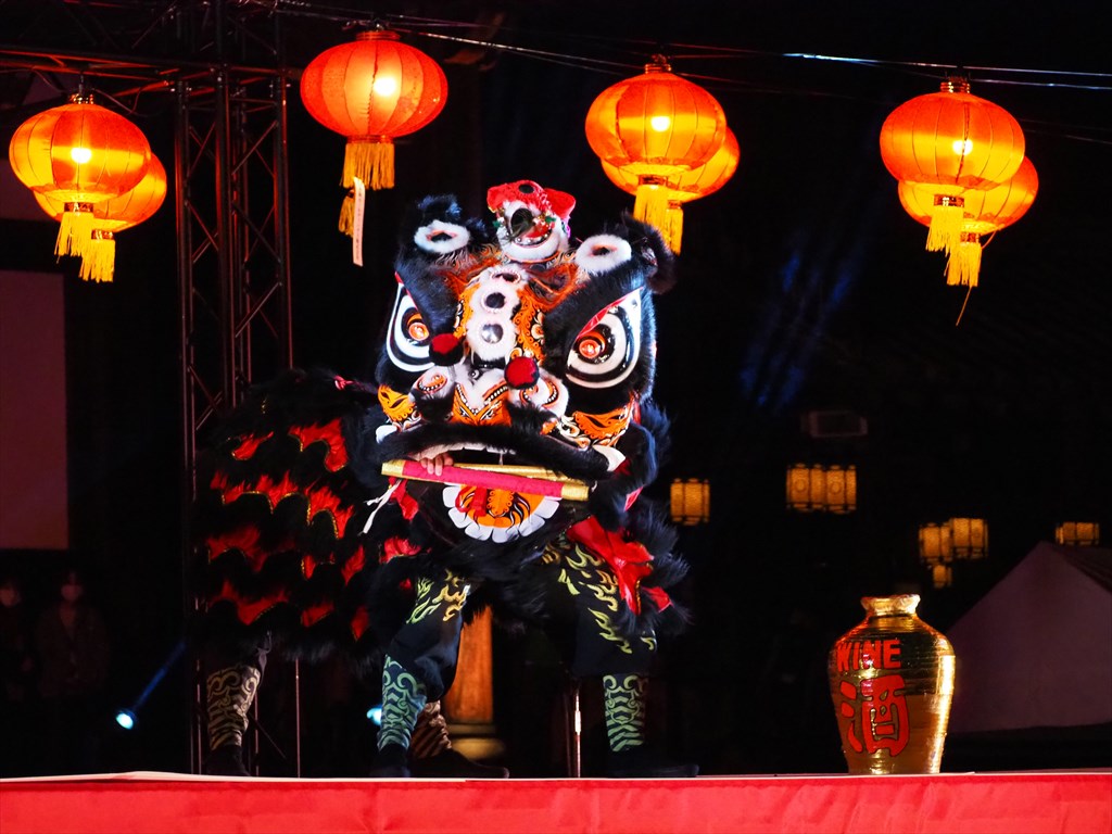 大雄宝殿前(月台)の特設ステージでは、中国文化を彩る変面、揚琴・二胡演奏、中国獅子舞などが披露されました。19日のみで四代目・玉田玉秀斎さんによる創作講談、舞龍もありました。変面、揚琴・二胡演奏、中国獅子舞は、20日・21日も行われる予定です。時間など詳細はホームページでご確認ください。