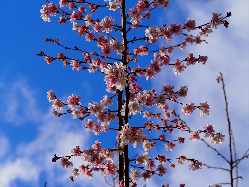 不断桜はヤマザクラとオオシマザクラの交雑種だそうで、大原・実光院で同じように秋から冬に咲く桜も不断桜と呼ばれています。厳しい寒さでも、雪が積もってもひっそりと咲き続ける御池桜。派手さはありませんが頑張る姿に、この冬も大いに元気を分けていただけます。