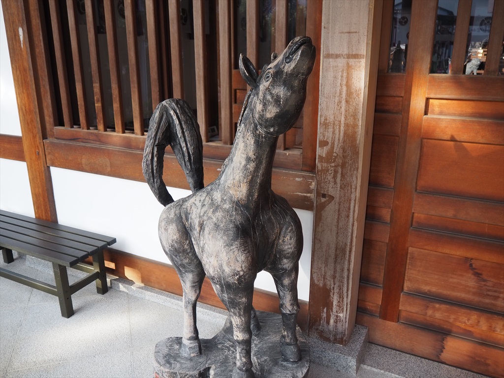 本殿は江戸時代の1816年に再建をされたもので、拝殿は平成8年に再建復興しました。現在は厄除け・開運・馬の神様としても信仰され、拝殿前には馬の像が並んでいるのも印象的です。
