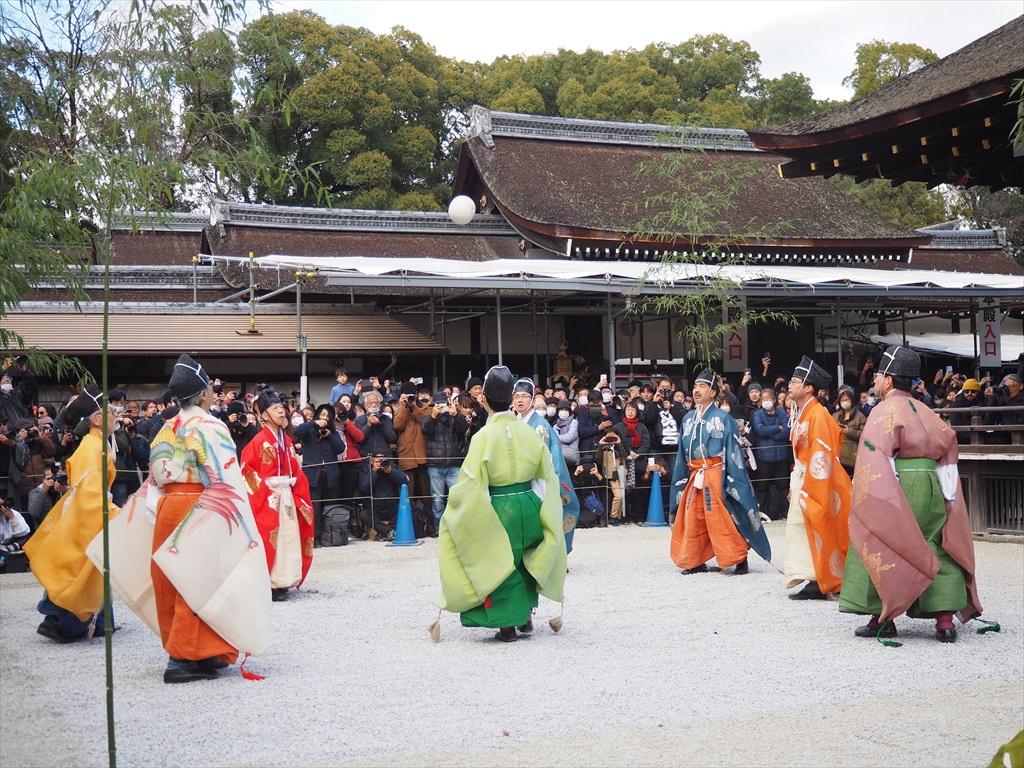 1月4日に、下鴨神社で蹴鞠はじめ(蹴鞠初め)が行われました。