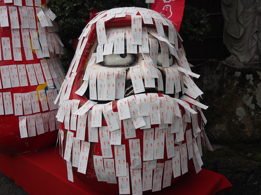 節分の日のとその前日は、境内が無料で開放され自由に庭園や堂内を参拝できるほか、ご祈祷などを受けることができます。節分の時には、厄除け札を達磨に貼って奉納することもできます(有料)。達磨の顔が見えないほどお札が貼られた様子がユニークですね。