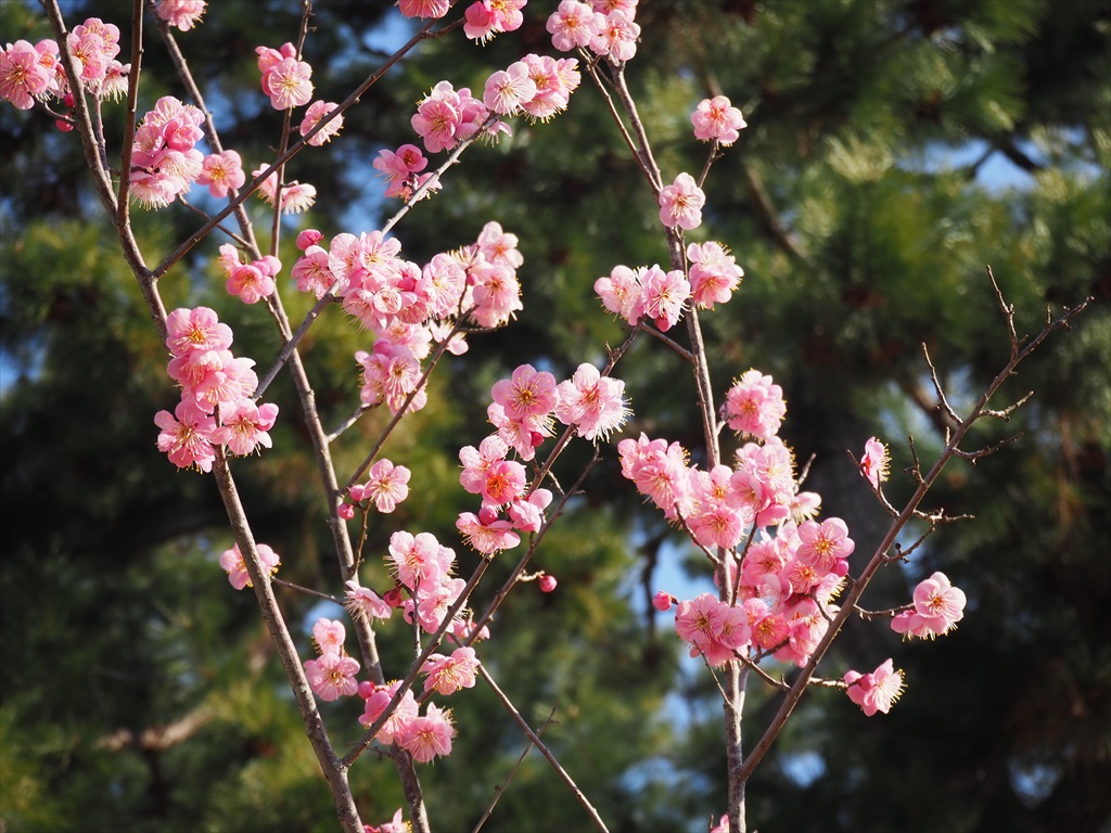 京都御苑の西側にある梅林には約200本の梅があり、そのうち早咲きの種類が見ごろとなっています。全体的にはまだ遅咲きの梅が多く、咲いていない木も多くあるため、春爛漫と言った雰囲気ではありませんが、甘い梅の香りとともに季節の進みを教えてくれています。この日も多くの人が笑顔で梅の周りに集まっていました。