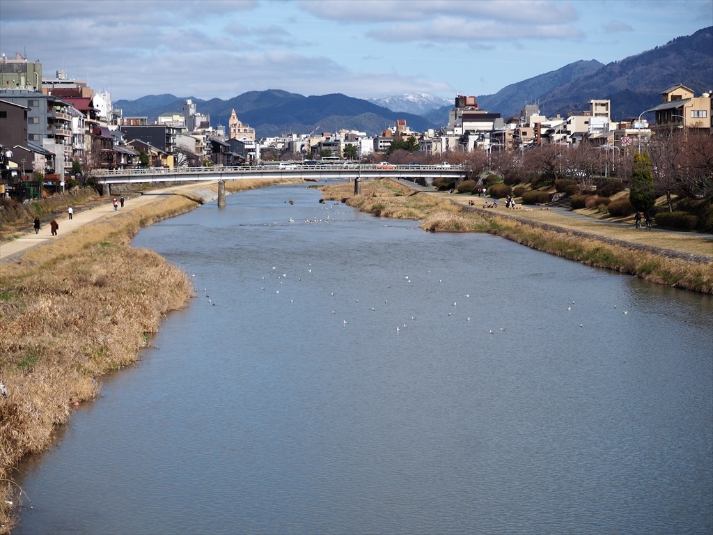 久しぶりに青空が戻った土曜日。五条大橋から鴨川を眺めました。上流部にはユリカモメも多くいて、まだまだ冬の雰囲気です。