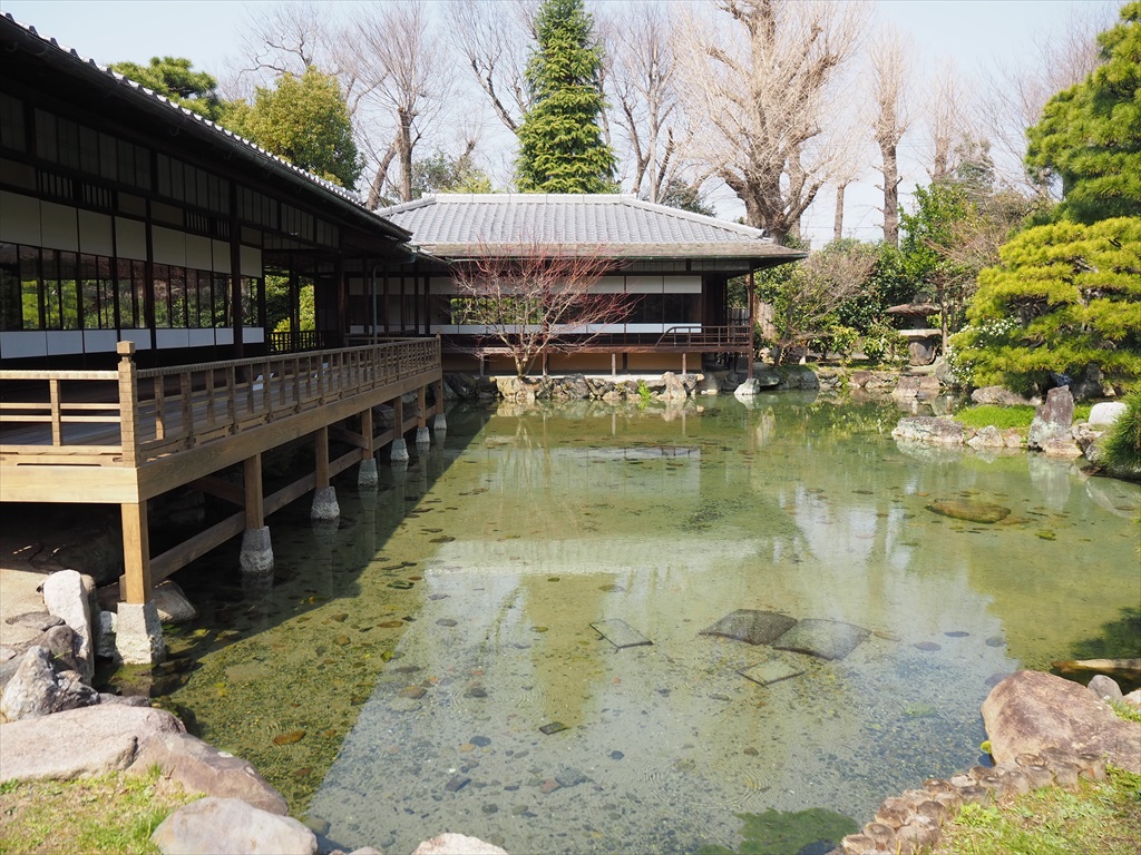 再建された建物も趣があり、園内中央にある楼門造りの傍花閣(ぼうかかく)が特に印象的です。現在は脇に植わる修善寺寒桜が咲いており見頃です。一足早く春の雰囲気を感じることができるでしょう。