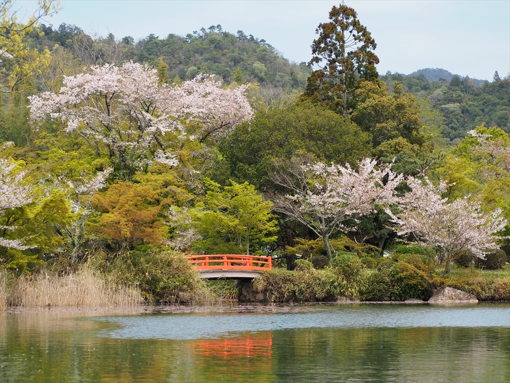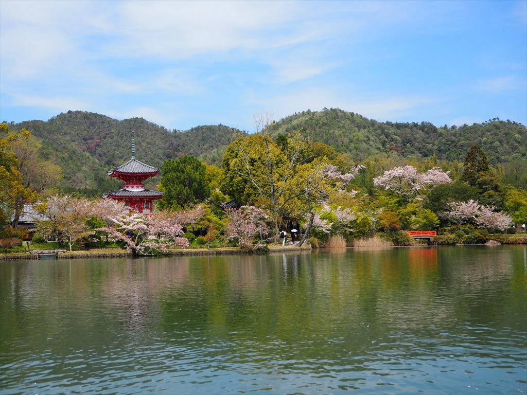 中秋の名月の時もそうですが、舟の上はまるで別世界のゆったりとした時間が流れています。皇族や貴族がこうして舟を浮かべて遊んだ思いもわかります。今年は桜が散り際ながら残っており、池の上から眺める様子も素晴らしかったです。大沢池での舟は、なかなか体験することができませんので、ぜひお時間に余裕を持って訪れてみてください。最終日の14日は14時30分までです。