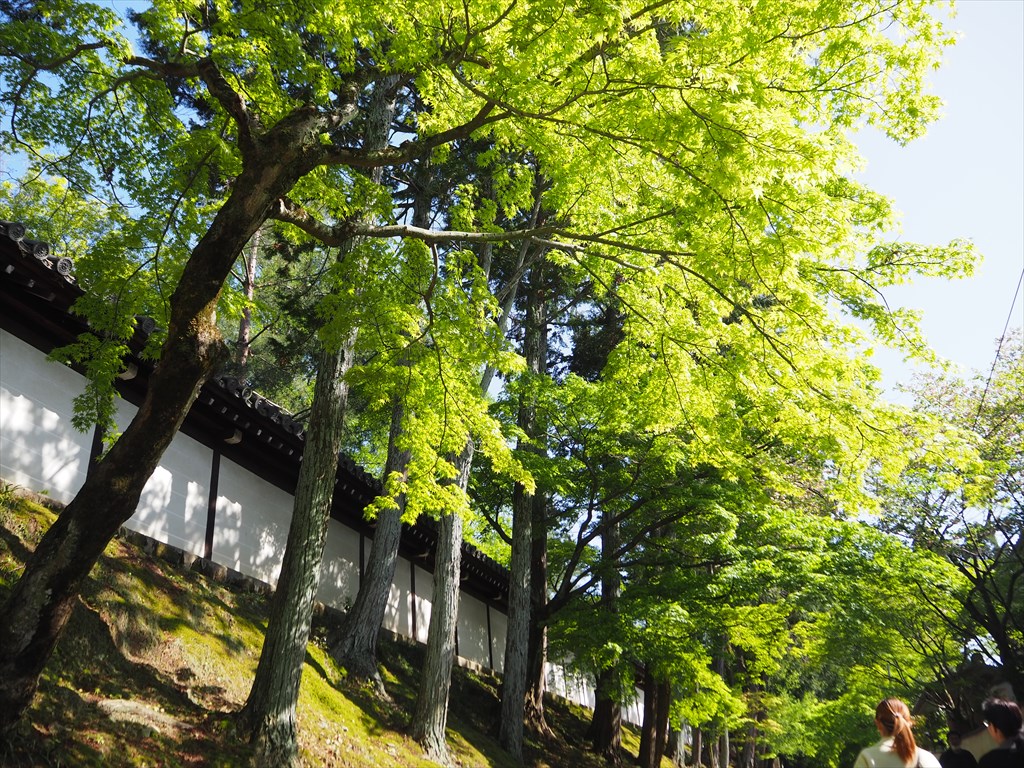 紅葉の名所として名高い東福寺は、新緑も抜群に綺麗です。臥雲橋から望む通天橋を包む新緑たいへん明るい光景でした。柔らかい緑の色彩は、芽吹いて間もない今の時期ならではです。緑の時期の東福寺は比較的に人も少なくておすすめです。