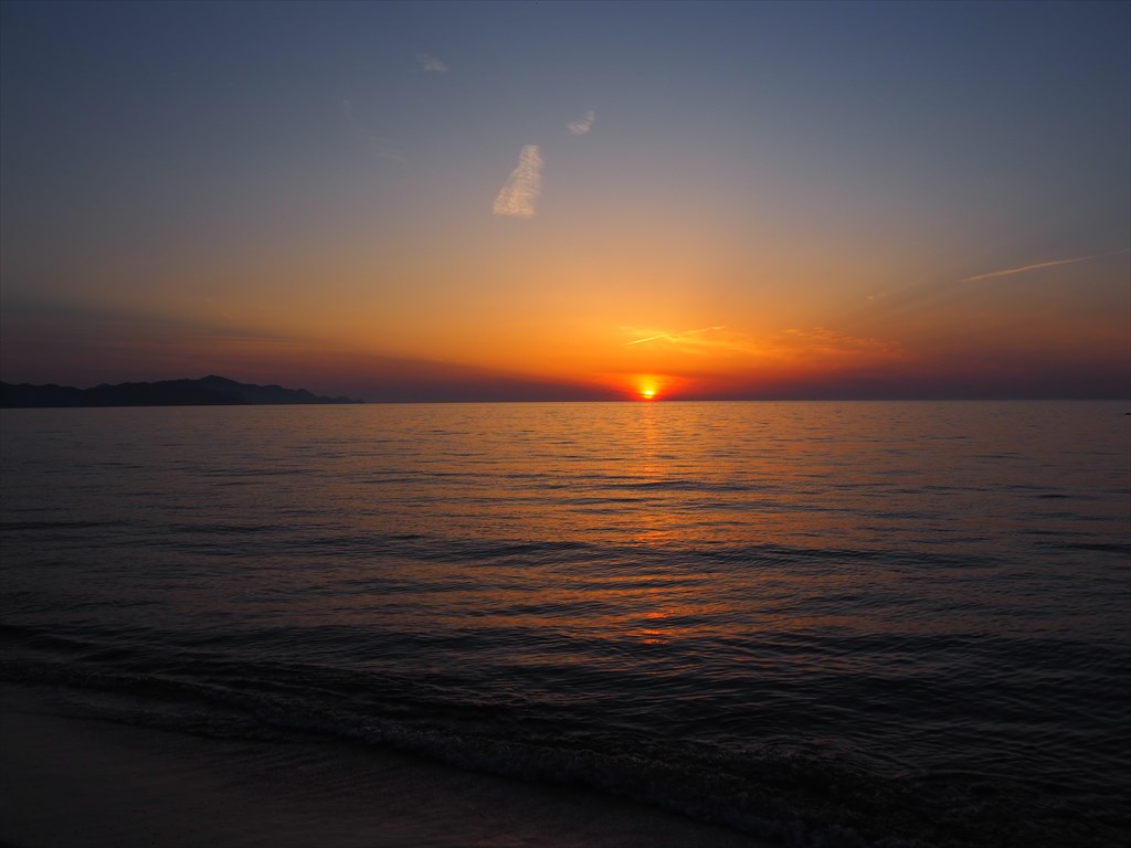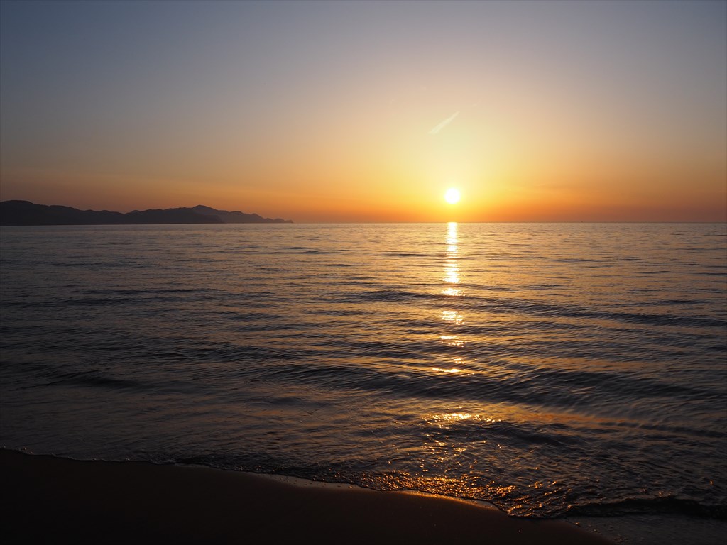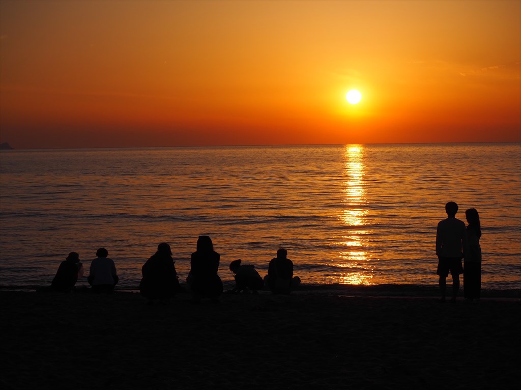 実は「夕日ヶ浦」という名前も、温泉の掘削とともにイメージアップのために名付けられたそうで、歴史的な地名ではありません。しかし、その名にふさわしく夕日は抜群に美しい場所です。この日はゴールデンウイークとあって多くの方が訪れて夕日を眺めていました。