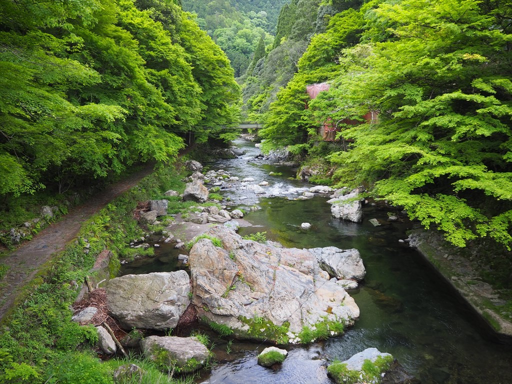 橋の上から澄んだ川の音に耳を傾けると、都会の喧騒からは遠く離れた場所へと来たように感じます。かの与謝野晶子は「ほととぎす 嵯峨へは一里 京へ三里 水の清滝 夜の明けやすき」と詠み、歌碑が渡猿橋から下りた場所にあります。