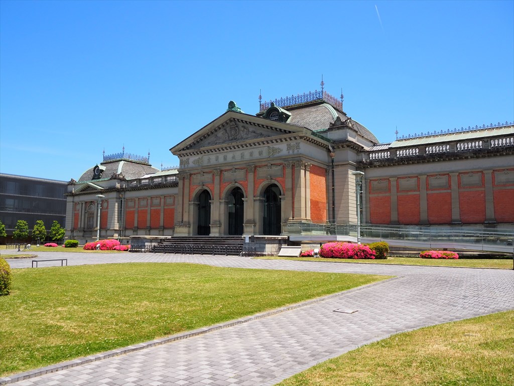 京都国立博物館の中庭は、見る人が見ると「おっ!」と思うようなものが置かれており、時間のある方は散策をしてみても面白い場所。明治古都館の東側にある茶室の「堪庵」も公開されています(貸切の場合あり)。博物館の裏側に立地している堪庵まで訪れる人は少なく、京都らしい美しい緑の風景を楽しむことができます。