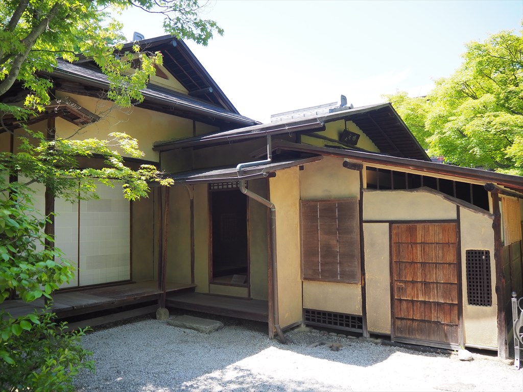 金森宗和好みの大徳寺真珠庵の茶室「庭玉軒」を写したとされ、昭和41年に明治古都館南側から現在の位置に移築した際に、屋根が銅板葺に改められています。あわせて庭と水屋後方の付属屋を整えて、茶会等の利用に一般開放もされており、事前申込みで一般の方も利用することが出来ます(有料)。普段は茶室の外観は気軽に見学することが出来ます。穴場で落ち着く場所ですので、よければ足を延ばしてみて下さい。