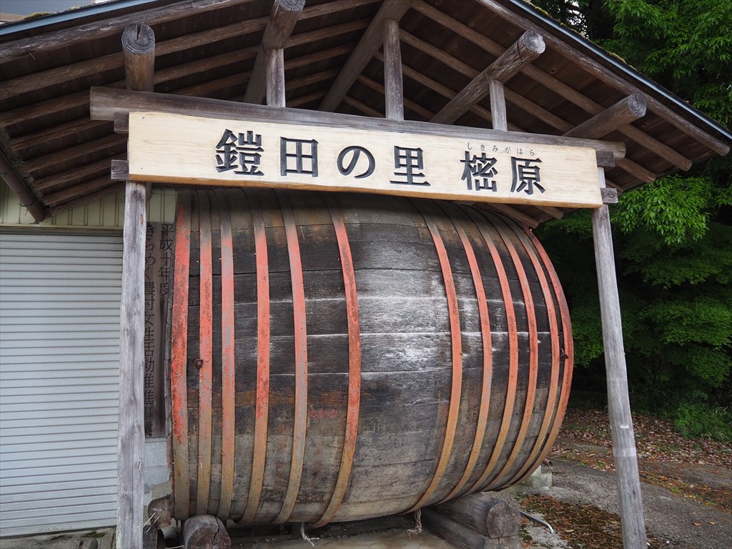 樒原の棚田はおよそ800枚。樒原は現在では正式な地名ですが、かつては通称で、正式には原村と呼ばれていました。そしてこの棚田は、鎧の板を糸でつないだように見えることから「原の鎧田」と呼ばれています。実際に現地に立ってみると、なるほどと思う光景です。兜の錣(しころ)にも似ているように感じます。棚田は、春には水をたたえ、初秋には黄金色に染まり、冬は雪景が美しく、そして夕日も綺麗。いずれの時期もカメラマンを惹きつけています。なお、私が訪れた5月下旬で、まだ田植えを順次行っているようでした。