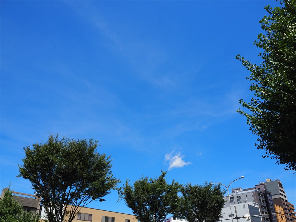 29日の京都は39.4℃まで上がり、1881年以降では歴代4位タイの高温記録となりました。歴代1位は2018年と1994年の39.8℃で、あと0.4℃に迫る厳しい暑さでした。私の経験上、39℃を超える危険な暑さの時には綿雲がほとんど浮かばず、空の青さが際立ちます。今日もまさにそうした「危険な空」でした。東日本でも内陸で40℃を超え、とんでもない暑さとなっています。