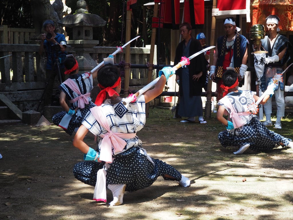 毎年7月最終土日に行われるのが伊根祭。舟屋で知られる伊根浦のお祭りで、通例の「例祭」では、地区ごとに祭礼船などが出て、西の亀島地区(亀島地区は東西に飛び地となっています)にある八坂神社で太刀振りの奉納などが行われます。