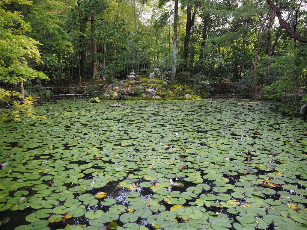 天授庵は私のおすすめのお寺。個人的にも幾度となく訪れています。天授庵は、枯山水の庭園と池泉回遊式庭園の二種類のお庭を楽しめ、飛び石や木の橋もあるなど、京都の中でも質が高い風景に出会えます。秋の紅葉も見事ですが、今の時期はまだ紅葉には早いものの、苔や緑が大変美しかったです。