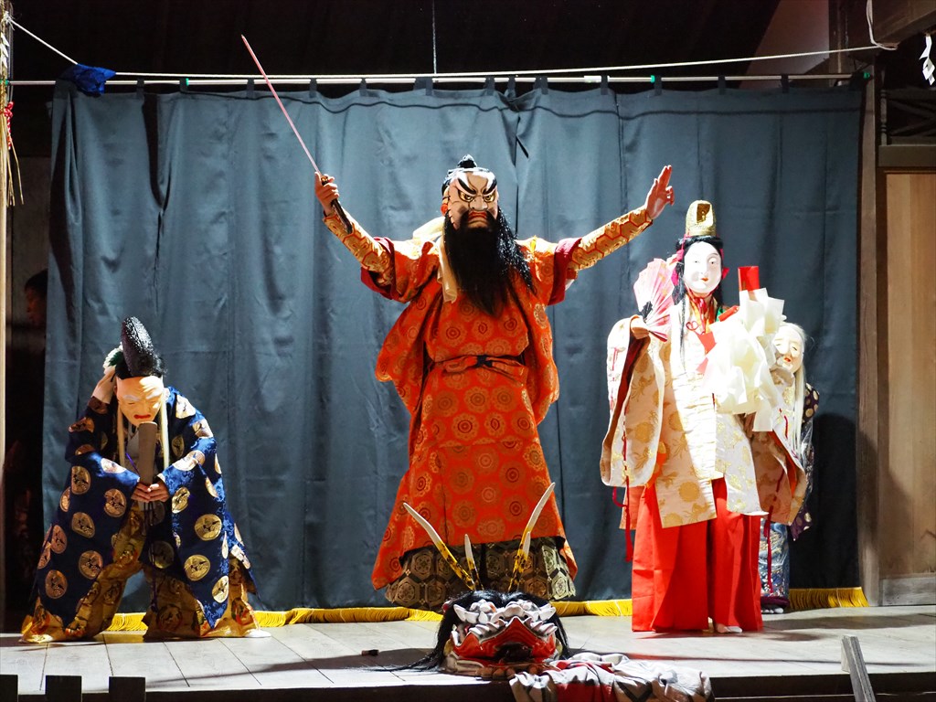 10月12日の夜に、粟田神社で石見神楽(いわみかぐら)の奉納がありました。