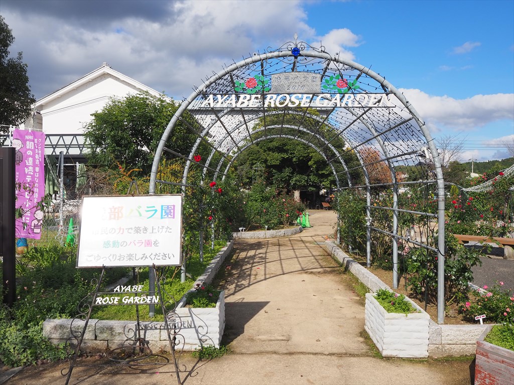 そしてあやべグンゼスクエアには「綾部バラ園」もあります。ホームページを参考にすると、2010年10月に開園し、造成から苗の植栽まで多数のボランティアスタッフが協力した市民手づくりのバラ園で、現在も綾部市内を中心に、福知山、舞鶴などからのボランティアの力により維持管理が行われています。