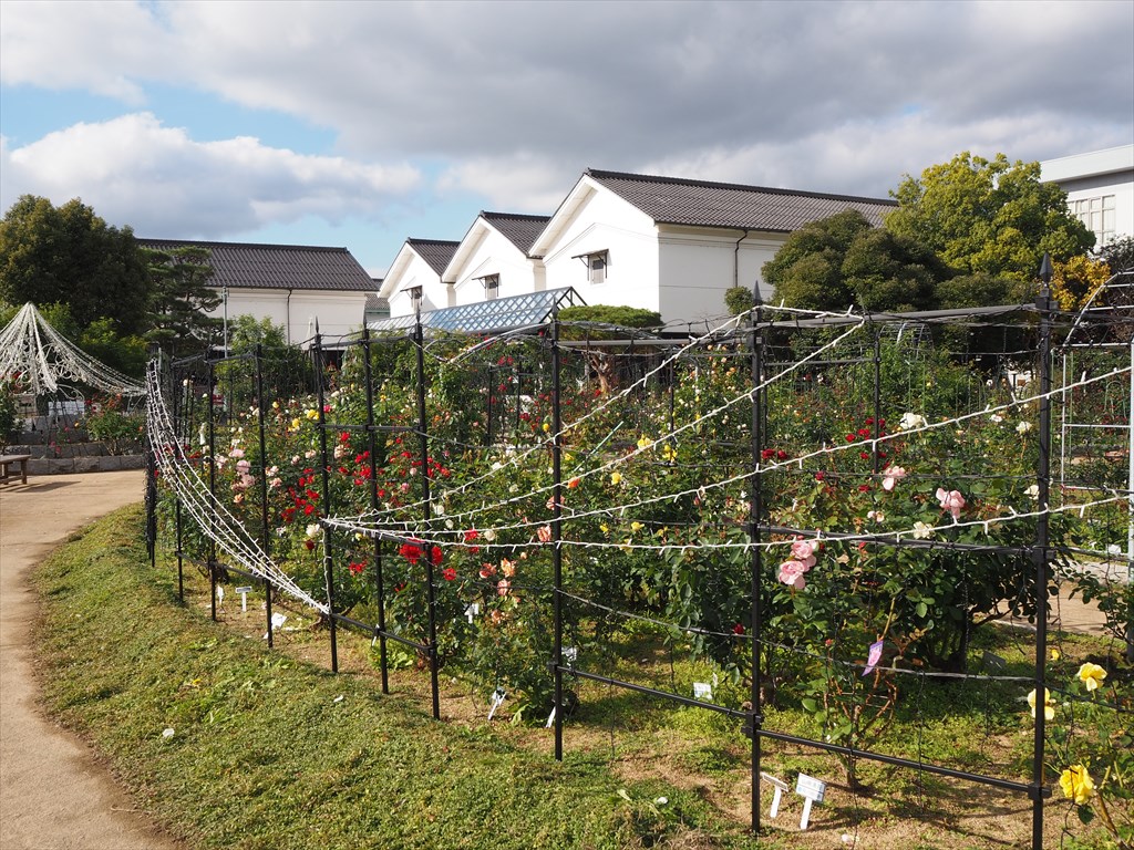 京都府綾部市のあやべグンゼスクエアには綾部バラ園があり、バラが咲く光景を自由に見させていただけます。