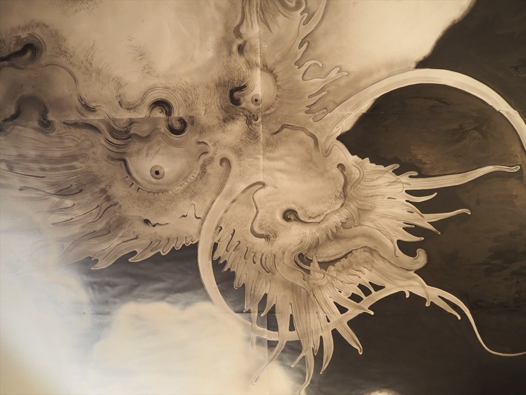 本堂では、中国人アーティストの陳漫(チェンマン)氏が描いた天井画の「白龍図」も目を引きます。二匹の龍が違った表情で参拝者を見下ろしています。また、同じく陳漫氏が描いた「唐獅子図屏風」も奉納されています。他にも、木村英輝氏が奉納した金屏風「登竜門」も存在感があり、鯉も多数描かれています。
