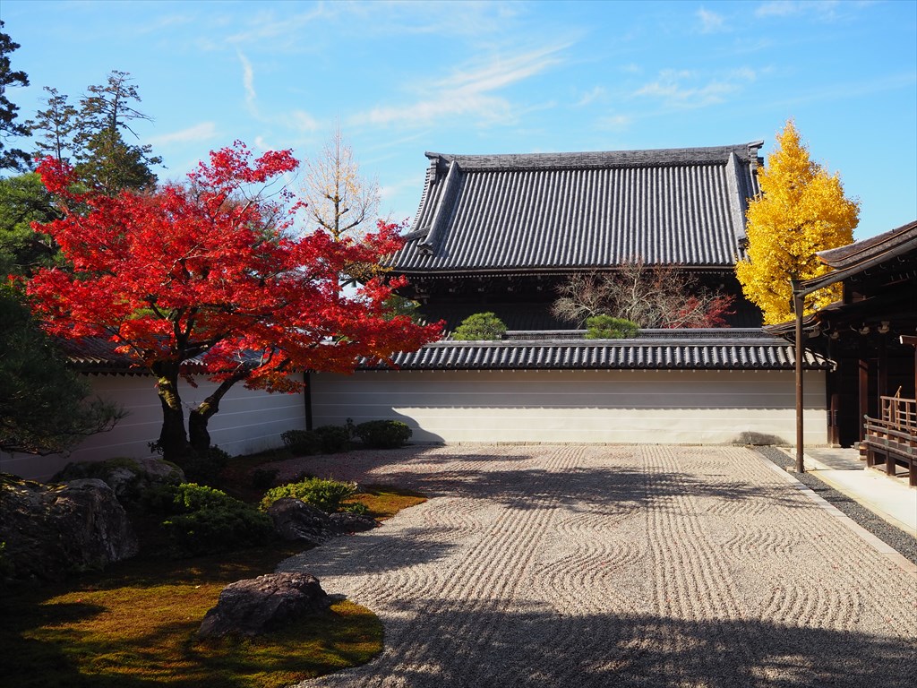 紅葉は来週前半にかけて楽しめそうです。有料の方丈庭園まで入ってみましたが、さほど混んでいませんでした。境内には海外の方も目立ち、永観堂方面もまだ賑わっていそうです。