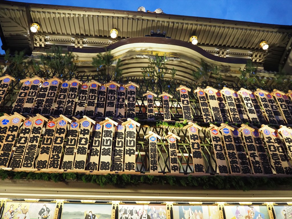 看板の文字は「隙間がないほど大入りになるように」との願いから、太く丸みを帯びた「勘亭流」という書体で隙間なく役者の名を記されています。人が中へと入ってくるようにと、内向きに字がまとめられているのが特徴です。全国でも江戸時代以来の古式が残るのは南座だけだそう。
