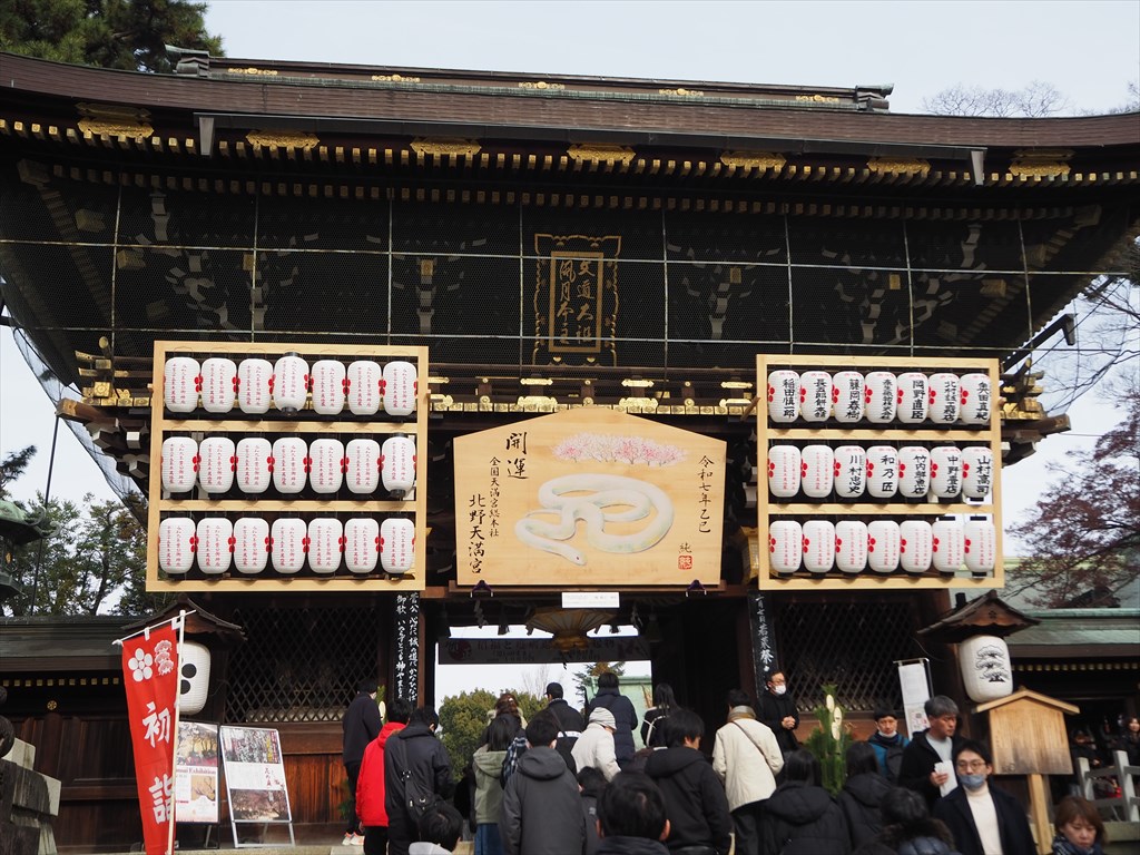 北野天満宮を訪れました。境内は初詣で賑わっています。